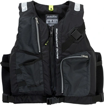 Baltic Adventure Precis som namnet säger är Adventure den perfekta västen för äventyr på vattnet. Oavsett om man fiskar, paddlar eller bara är ute efter en väst med många fickor är Adventure ett bra val. På framsidan av västen finns två dragkedjefickor, en större för tex betesbox och en mindre för mobiltelefonen. På ryggen har Adventure två nätfickor. Reflexer finns på axlarna.