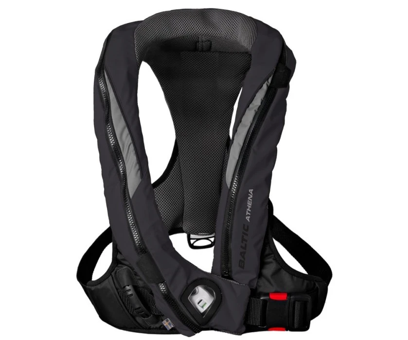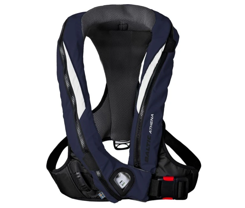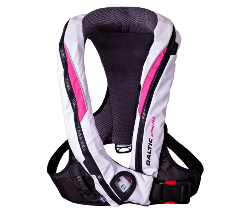 Athena 165 är en flytväst för dam och världens första uppblåsbara räddningsväst utvecklad för kvinnors kroppar. Västen kom nyligen 2:a i klassen Årets Innovation i prestigefyllda British Sailing Award. Passformen är skräddarsydd för kvinnans antonomi – vi placerade ventilen och patronen under bysten för maximal smidighet och passform. Athena 165 Flytväst har extra bra justeringsmöjligheter och är nätt och följsam. Flytvästen stängs enkelt med en skönt vadderad velcro, som skyddar från midjebandets hårda spänne. Athena 165 har en hög bärförmåga på 165N och klassas därmed som räddningsväst. Vill du läsa mer om olika säkerhetsklasser och typer av flytvästar kan du göra det här.