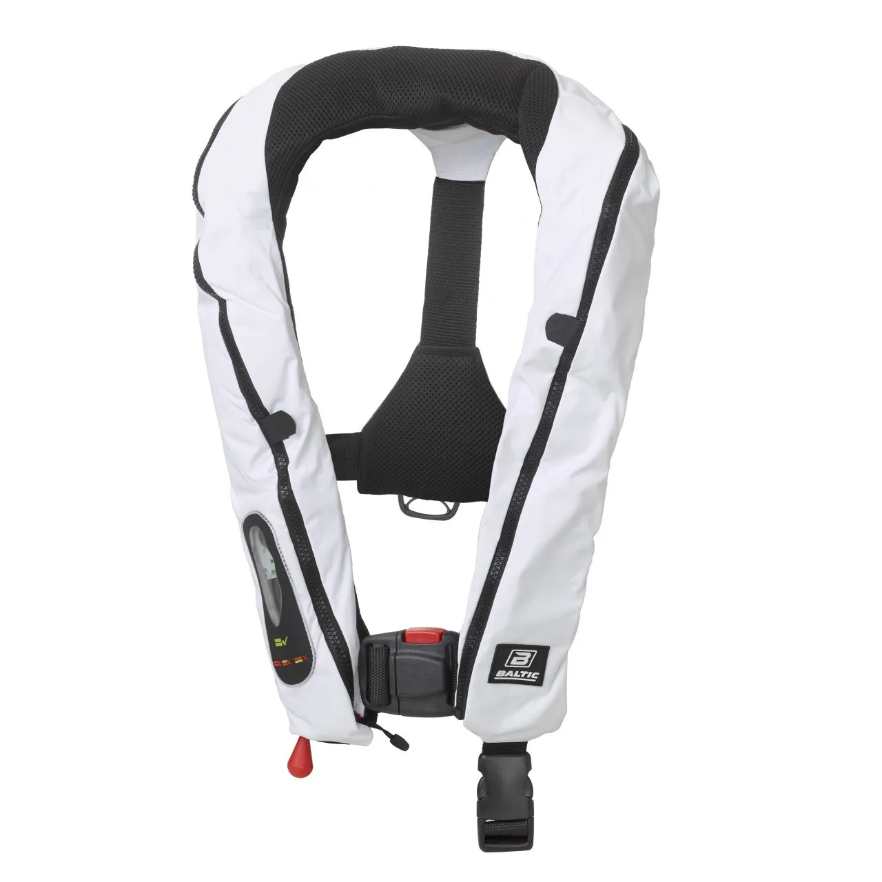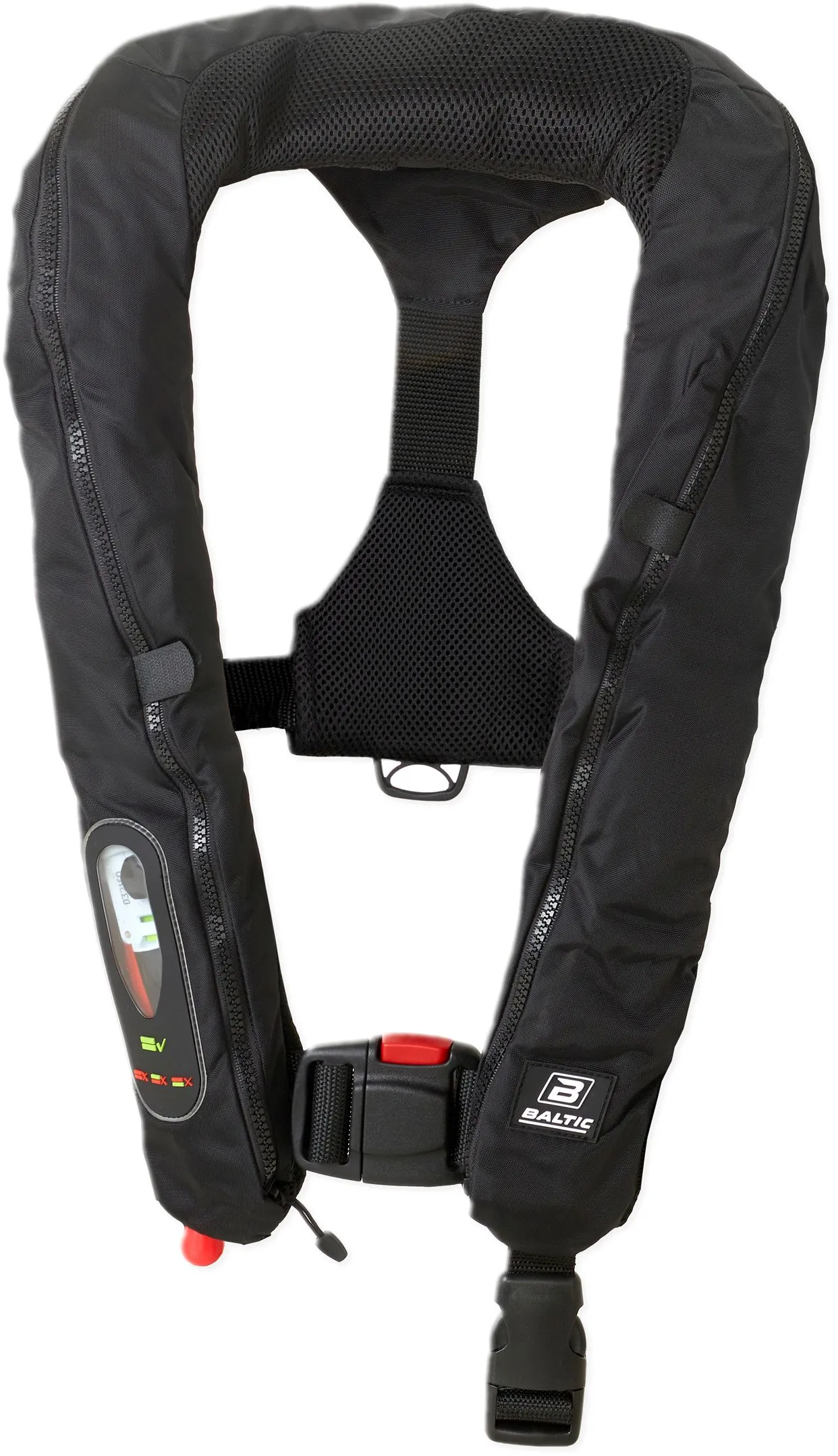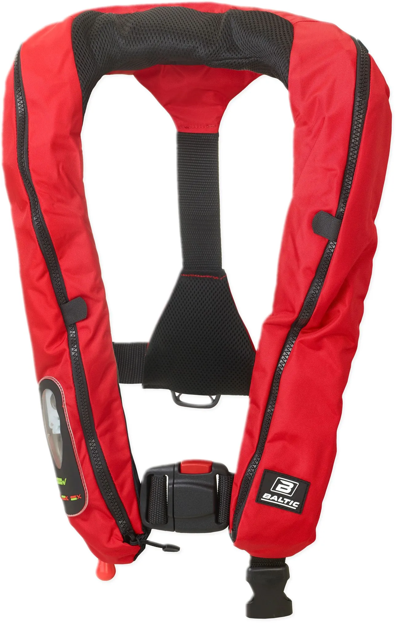 BALTIC LEGEND Automatisk uppblåsningsmekanism. Det här är en väst som vi är övertygade om att den kommer att stanna i vårt sortiment en lång tid framöver. Legend har en helt annan design jämfört med traditionella uppblåsbara räddningsvästar, vilket gör att västen sitter stadigt och bra på både på tjejer och killar. Större halsöppning, följsamma material, vadderad baksida och ett större inspektionsfönster. Avtagbart grenband. En nyhet, som gäller alla Baltic uppblåsbara räddningsvästar, är att de numera är utrustade med en cylinder retainer, en smart säkring som ser till att hålla kolsyrepatronen på plats även vid kraftiga vibrationer och stora temperatursvängningar.