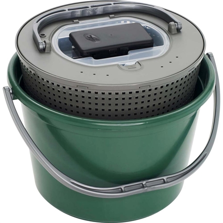 Robust plasthink för optimal förvaring av betesfisk. Löstagbart innertråg av kraftigt plastnät och med lock. Denna konstruktion möjliggör enkla vattenbyten och gör det lätt att få tag i betesfisken. Innertråget kan också förvaras direkt i sjön så att fisken har tillgång till friskt och syrerikt vatten. Beteshinken levereras med syrepump som är monterad infällt i locket. Syrepumpen kan monteras loss.