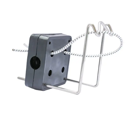 Kraftig konstruktion i aluminium med reglerbar elastisk lina som håller bojen på plats. Förberedd för nödljusmontage. Multifäste för enkel montering på pushpit.