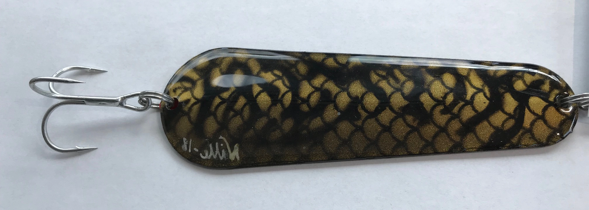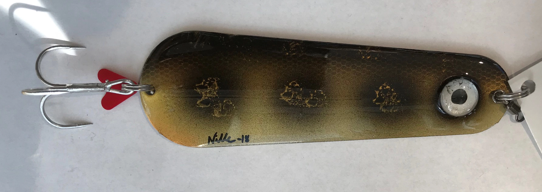 Spoon By Nille är en sked för storgäddan i heta färger. Finns i två tappningar alubaksida 14cm/45gr för det grundare fisket 0,5-2 meter och mässingsbaksida 14cm/70gr för fiske på 1-4 meter.