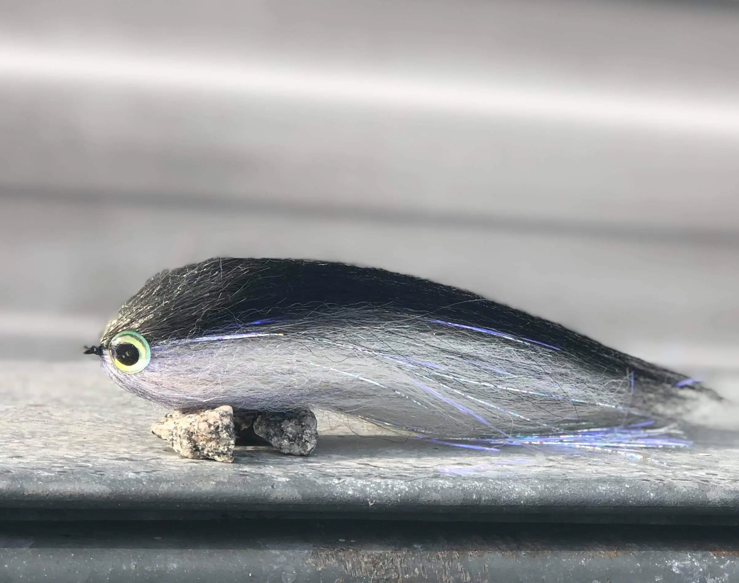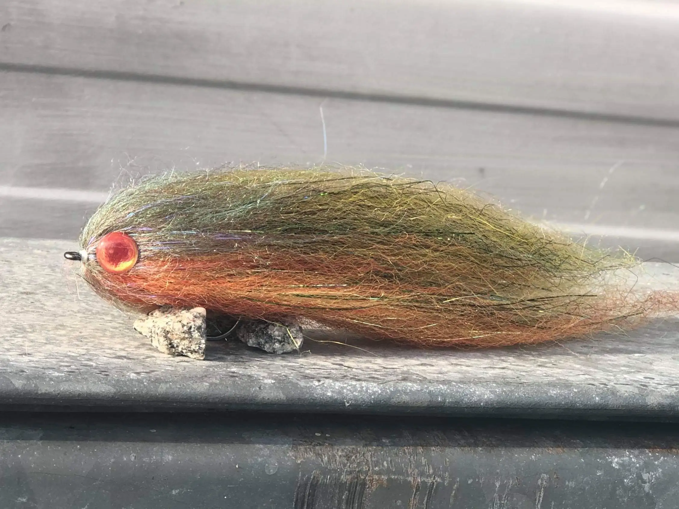 Enkelkroksfluga bunden med material som gör att flugan sjunker väldigt sakta. Fungerar utmärkt att fiska hem sakta och triggar köldstela vintergäddor till hugg. 15-17cm långa