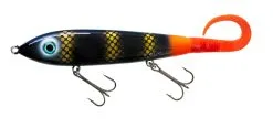 Super glidare som är galet lätt fiskad. Långa sida sida glid och som fiskar grunt. Bra häng, går att fiska super sakta och att få helt suspending med mindre krokar. Ett grundvatten och kallvatten bete av rang. Väger 102 gr och är 26 cm med tailen. Tillverkad i ett stycke ABS med foaming kärna (dvs du kan köra en lastbil över den utan att den spricker) genomgående 1,6 mm rostfri stål vire och viktad med zink. En riktig stridsvagn helt enkelt.