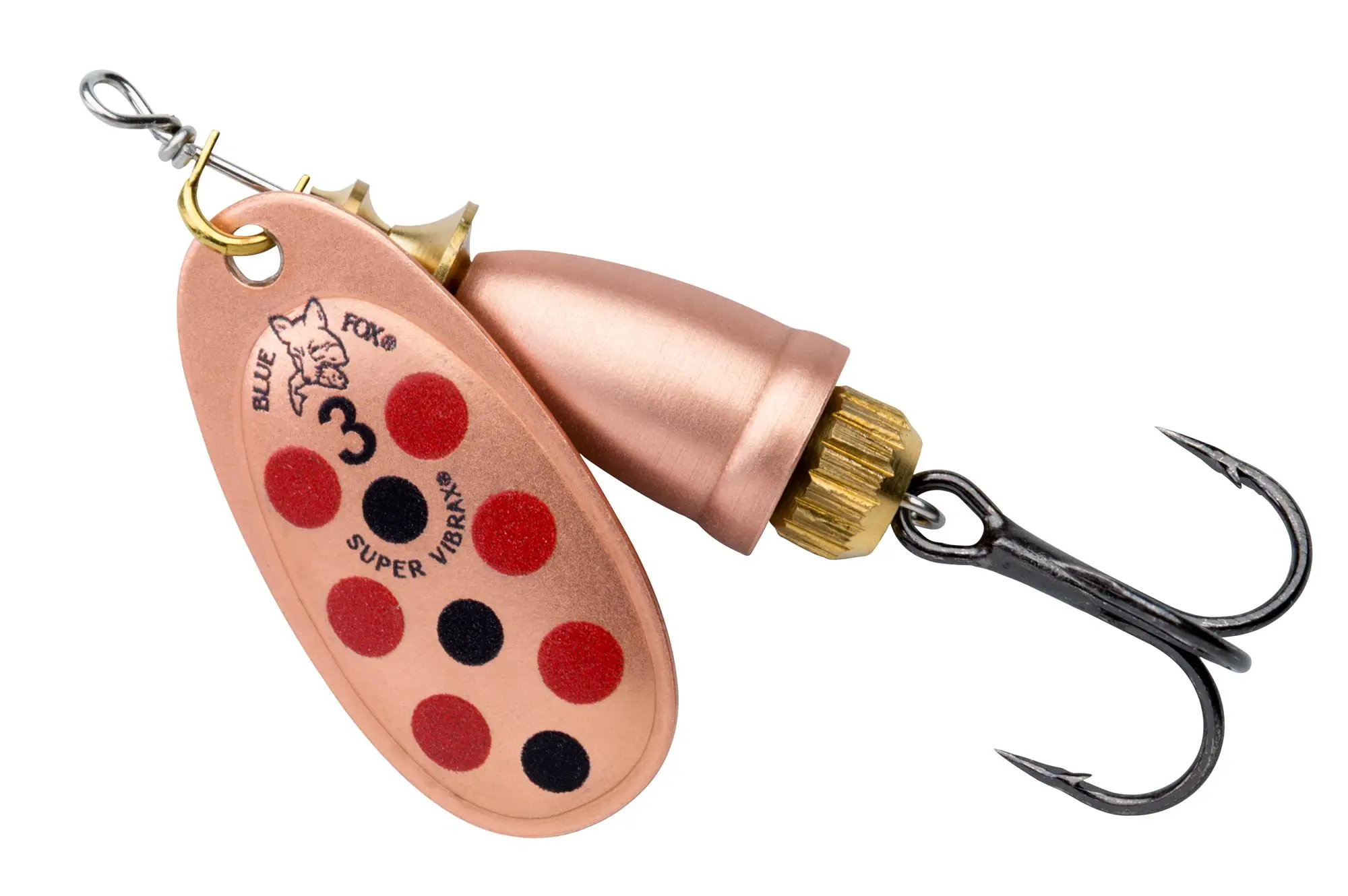 Vibrax UV Nr:4 Blue Fox Spinnare En Vibrax med dubbla signalerande prickar påskeden, målade i två skikt, vilket väcker fiskens uppmärksamhet och verkar i högsta grad irriterande. 5 olika färger.