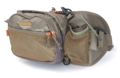 Vision Love Handels. En ny praktisk designad midjeväska från oss för dig som bär en lättare börda. En traditionell midjeväska som man också kan ha i brösthöjd tack vare en justerbar halsrem. Den har 2 st D-ringar för att fästa på vadaren eller på din Aqua Back. Väskan är bred nog att ge bra support vid tyngre last. Det finns också en D-ring på halsremmen för att fästa håven.